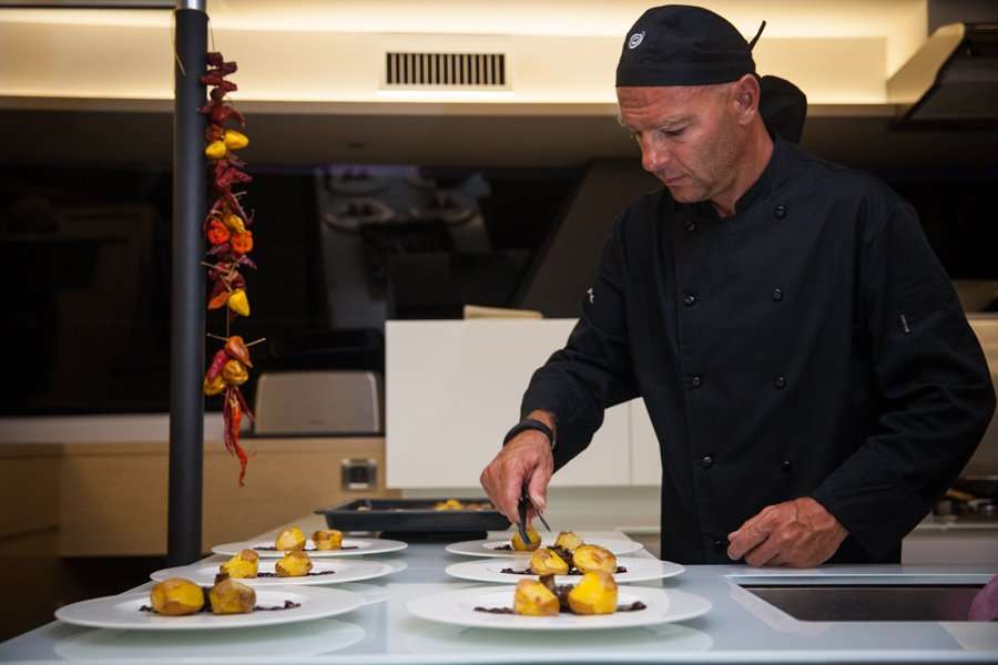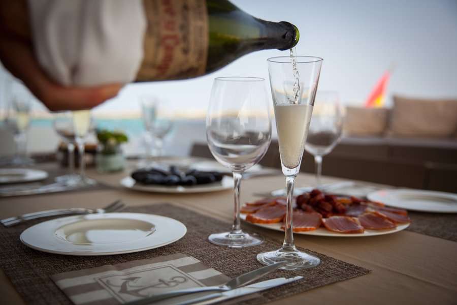 Il catamarano può accogliere a bordo 8 persona al massimo in 4 cabine doppie, ciascuna con il suo bagno. Aria condizionata nelle cabine e nel salone, wifi e TV, sono alcuni degli equipaggiamenti presenti in questo catamarano di lusso.