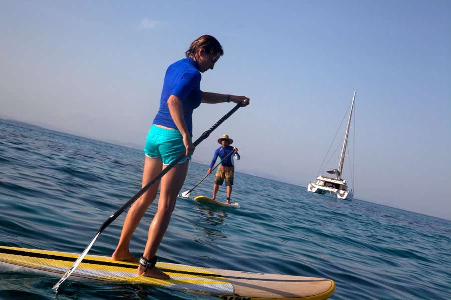 Il catamarano ha inoltre a bordo tutti gli equipaggiamenti necessari sia per chi ama le attività sportive che per chi invece preferisce l'ozio e il relax.