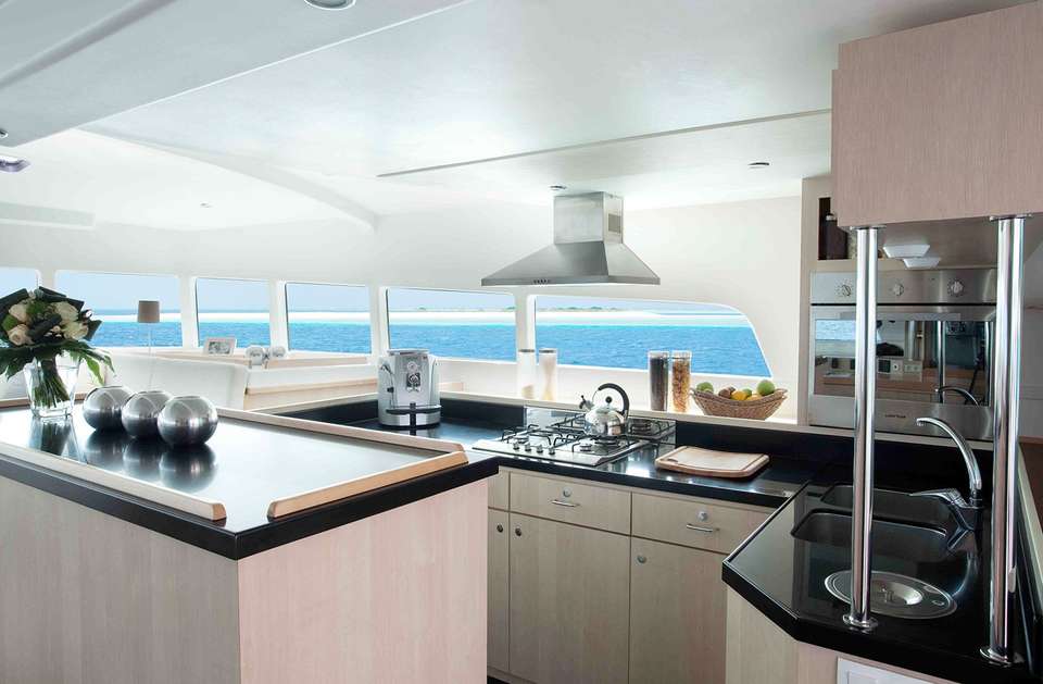 Con le sue 6 cabine (3 doppie, 1 doppia convertibile in matrimoniale e 2 triple), questo catamarano può ospitare fino a 14 passeggeri. Tutte le cabine hanno un letto matrimoniale o 2 letti singoli (e 1 letto singolo extra per le cabine triple), un oblò, un ventilatore, lampade da comodino, spazio per riporre i vestiti e un bagno con doccia e toilette privata.