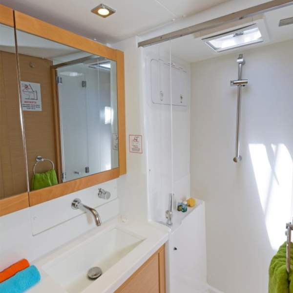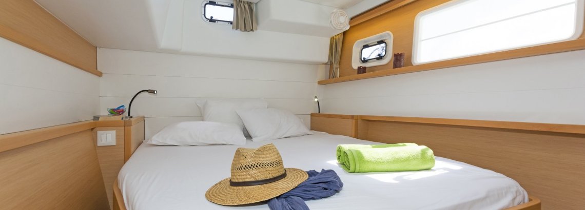 Sembrerà di stare in una camera d'hotel per il comfort a bordo del Lagoon 450. Ogni cabina è spaziosa, con un armadio e un bagno privato. Ogni cabina ha un ventilatore e una lampada per leggere. Lenzuola e asciugamani sono forniti a bordo. Il Lagoon ha 4 cabine doppie e una capacità massimo di 8 passeggeri.